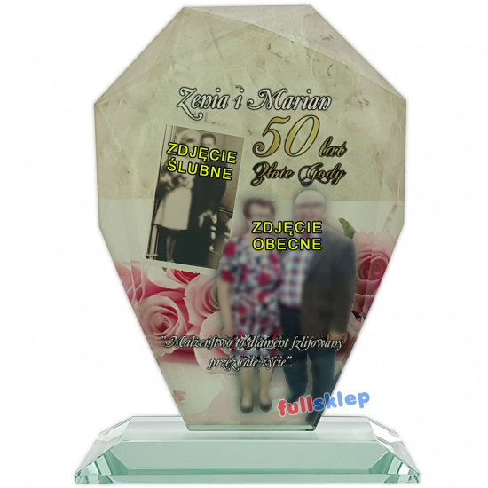 Ten prezent będzie zachwycającą pamiątką Rocznicy Małżeństwa na długie lata. Szklana statuetka na której możesz umieścić swój niebanalny tekst życzeń jak również zdjęcie w kolorze albo czarno białe osób obchodzących jubileusz małżeństwa.