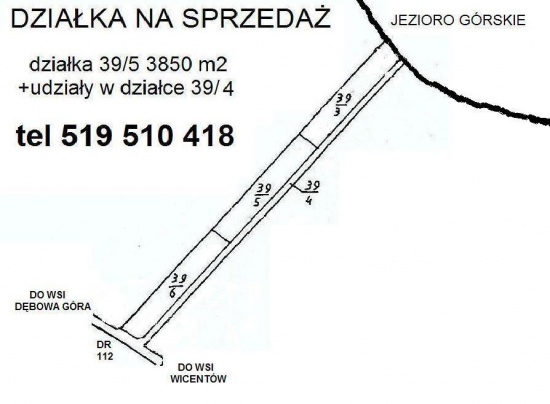 SPRZEDAM UROCZĄ DZIAŁKĘ ROLNĄ O POW 3850 M2 26mx148m WE WSI NOWE RUMUNKI Z WYDANYMI WARUNKAMI ZABUDOWY SKRZYNKA ENEGI NA DZIAŁCE DO JEZIORA GÓRSKIEGO 150M A DO CIECHOMICKIEGO 300M OBA JEZIORA MAJĄ POWIERZCHNIĘ OKOŁO 100ha DZIAŁKA POŁOŻONA W OKOLICY LASÓW I JEZIOR ODLEGŁOŚĆ DO PŁOCKA 10 KM IDEALNE MIEJSCE NA ODPOCZYNEK LUB ZAMIESZKANIE